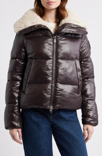 This quilted puffer jacket with soft faux-shearling lining inside the collar helps repel water to keep you dry and warm. A two-way front zipper along with snap-closure hand-warmer pockets provide the perfect finishing touches.
