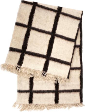 Momos Black and White Grid Handwoven Wool Throw Blanket