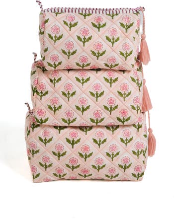 Mona Blockprint Makeup Bag in - Set of 3