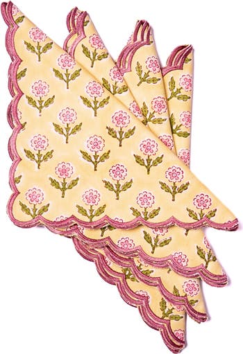 Mona Scallop Embroidered Blockprint Napkins - Set of 4