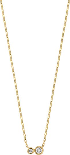 Two bezel-set diamonds twinkle side by side at the center of this delicate chain necklace handcrafted from 18-karat gold.