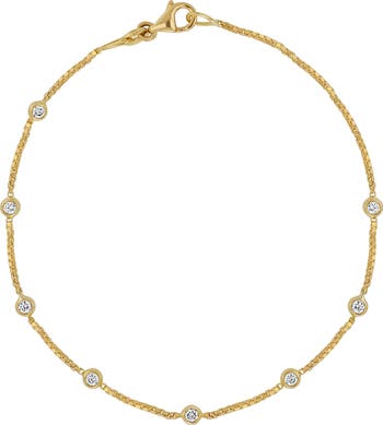 Bezel-set diamond stations bring brilliance to a handcrafted bracelet made of 18-karat gold.