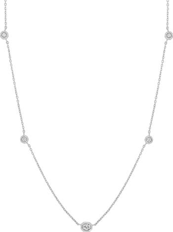 Bezel-set diamond stations bring brilliance to a handcrafted necklace made of 18-karat white gold.
