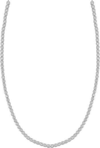 This handcrafted tennis necklace captivates with the fiery sparkle of 91 bezel-set diamonds and the gleam of 18-karat white gold.
