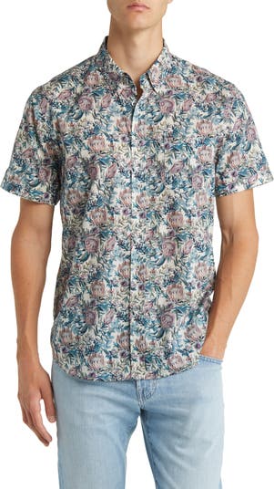 Made from a lightweight blend of lyocell and cotton blend, this relaxed button-up features abbreviated sleeves and a print of proteas blooms and berries.