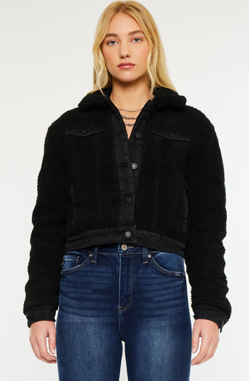 A jacket that is sure to keep you warm but still give you style. Our Monet Jacket has an edgy vibe, perfect for layering up on a night out on the town or covering up during the colder seasons. Accented with dark-gray trim along the bottom, buttons and front pockets. Features two side pockets, and two button-flap pockets at the chest.