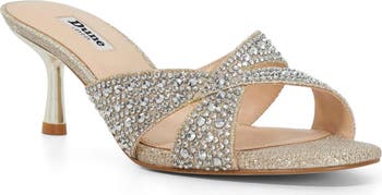 Sparkling crystals illuminate the asymmetric straps of this glamorous sandal that's ready for your next occasion.