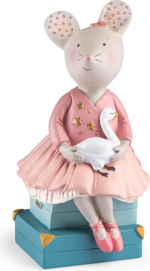 A pretty, hand-drawn resin money box featuring the little mouse and her friend the swan. She will look after all the little treasures in her care. A pretty decorative accessory that will look great in any child's bedroom.