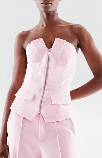 Our Monica Top is a stunning new addition to your wardrobe collection. Featuring a center front exposed zipper and architectural panels, you will be sure to impress. Comes with removable straps so you can change up the look. Pair with our Monica Trousers for a full look.