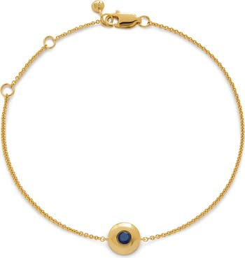 A gleaming round charm bezel-set with a birthstone of your choice serves as the focal point for this vermeil chain bracelet.