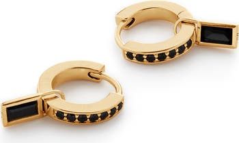 Hand-cut black-spinel baguettes lend dramatic sparkle to these versatile vermeil huggies plated in 18-karat gold.