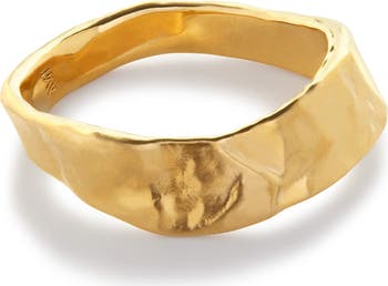 A hammered finish gives a ruggedly organic look to this sterling silver ring that's plated with recycled 18-karat gold.