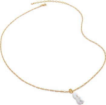 A baroque freshwater pearl brings a droplet of shine to a stackable necklace inspired by seaworn treasure.