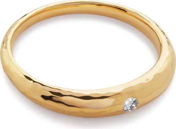 A single diamond adds a hint of sparkle to a hand-hammered ring made from recycled 18-karat gold vermeil.