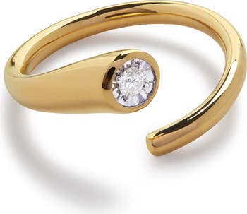 A single, sparkling solitaire shimmers at the end of this open wrap ring cast in sustainable recycled 18-karat-gold vermeil.