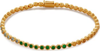 Beautifully bezel-set stones line this colorful tennis bracelet crafted from recycled sterling silver plated with gleaming 18-karat gold.
