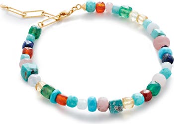 A wondrous array of 39 colorful stones brings a mood-boosting vibe to this handcrafted bracelet with a paperclip-chain clasp.