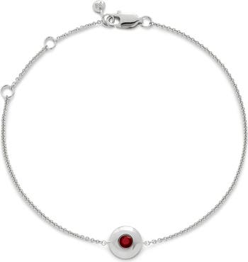 Celebrate a friend or treat yourself with this sterling silver bracelet handcrafted with an understated bezel-set red garnet.