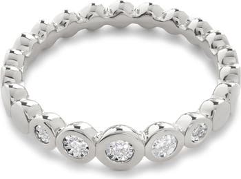 Five lab-created brilliant-cut diamonds bring exquisite sparkle to a graduated half-eternity band ring handcrafted from recycled sterling silver.