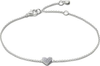 Twinkling lab-created diamonds bring romantic sparkle to the heart charm strung on this delicate chain bracelet forged from recycled sterling silver.