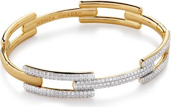 Beautiful links glisten with lab-created diamonds on this bangle handcrafted from sterling silver and plated in recycled 18-karat gold.