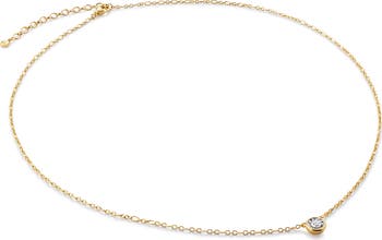A round cut gives simple elegance to the lab-grown diamond in this handcrafted necklace.