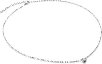 A round cut gives simple elegance to the lab-grown diamond in this handcrafted necklace.