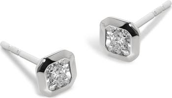 Lab-grown diamonds glimmer at the center of octagonal stud earrings handcrafted from sterling silver and plated in 18-karat gold.
