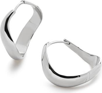 Recycled sterling silver is sculpted into an undulate swirl shape to form these effortless hoop earrings.