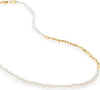 Hand-strung nuggets of 18-karat gold vermeil and seed pearls compose a contemporary necklace that'll bring instant highlight to your neckline.