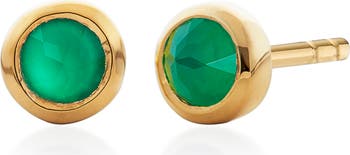 Add a whisper of color to your look with dainty studs handmade in polished 18-karat-gold vermeil and set with a bright green onyx. The small size makes them perfect for piling on with other earrings for a fun, customized look.