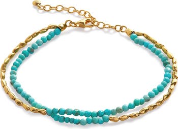Mini nugget and semiprecious stone beads compose a layered bracelet for a textural pop of color.