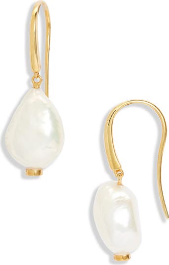 Baroque freshwater pearls lend irregular silhouettes to these modern drop earrings.