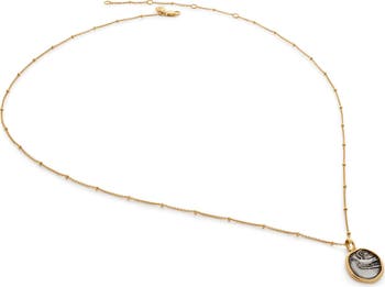 This delicate necklace features a satellite chain centered by a two-tone pendant aged with a hand-finished patina.