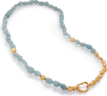 - Recycled sterling silver/18k-gold plate/green onyx or aquamarine