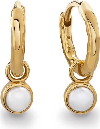 Dainty charms set with mabé pearls bring a milky glow to these recycled-18-karat-gold vermeil huggie hoops with hand-hammered, undulate surfaces that radiate light.