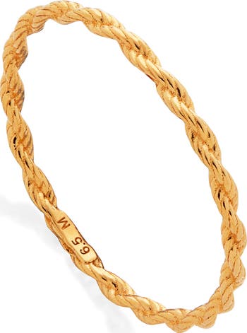 A rope-inspired design lends subtle texture to a gleaming, minimalist band that looks good in a stack or as a thumb ring.