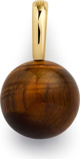 Bring an earthy glow to your favorite chains with this round tiger's-eye pendant completed with a satin 18-karat gold-vermeil jump ring.