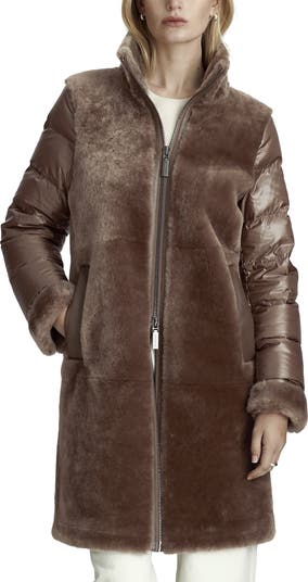 It doesn't get more luxurious than the Monique coat, with a shearling fabrication that drapes and moves like silk. Down-insulated quilted sleeves keep your arms toasty, while the shearling cuff warmers and zippered wrist vents provide temperature flexibility throughout the day. A high collar and relaxed silhouette complement the overall femininity of this style.