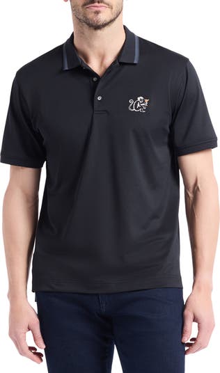 An embroidered monkey is sure to get a smile at the 19th hole as he sips his favorite cocktail on this breathable, stretch-enhanced cotton-piqué polo.