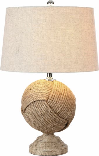 For centuries sailors have made a statement with the ornamental monkey's fist knot, and now you can bring that same seafaring style into your home. Fully weaved with natural rope, this elegantly curved lamp features an oversized knot base and is finished with a classic flax drum shade to give it a casual coastal vibe. The perfect addition to any seaside hideaway.
