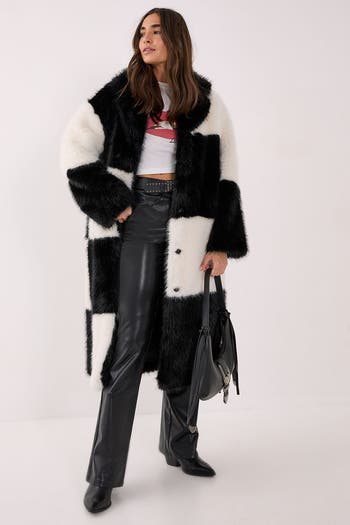 Make a dramatic entrance in this show-stopping Mono Check Collared Faux Fur Coat from NastyGal. The bold geometric pattern creates a visual masterpiece that demands attention, whilst the sumptuous faux fur texture adds tactile interest to your winter wardrobe.