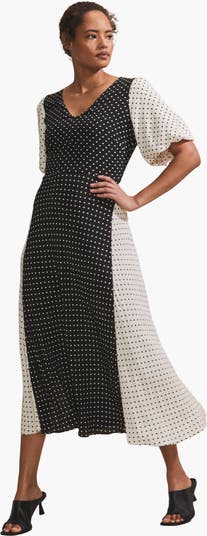 Step into style with the elegant mono spot midi dress, a perfect blend of sophistication and comfort, ideal for any occasion where you want to shine.