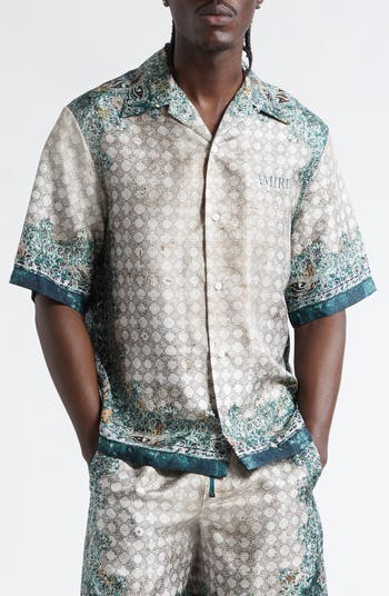 This relaxed button-up feels like Mike Amiri’s late-night LA lens put on silk, all gloss and attitude with a bold pattern that never stays in the background. The convertible collar is the styling lever, notched when you want ease then refined into a clean point collar.