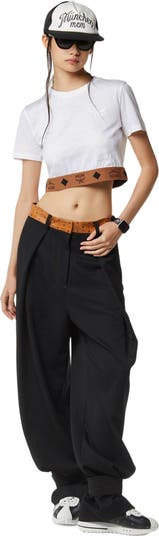 Womens cropped organic cotton jersey T-shirt with Laurel logo embroidery and Visetos monogram jacquard elastic hem