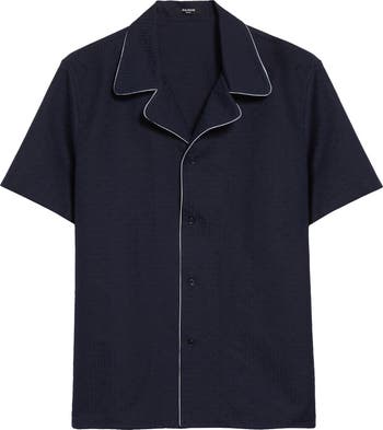 Pierre Balmain's fascination with France's labyrinthine gardens inspires the dimensional monogram pattern on this cotton pajama shirt refined with classic optic-white piping.