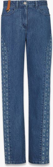 Women’s oversized denim jeans with Visetos monogram jacquard trim