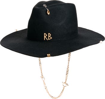 Add a glamorous flourish to your look with this wool fedora glitzed up with piercing-inspired details, a dangling curb chain and a logo accent.