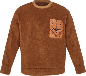 Unisex oversized fleece sweatshirt with monogram print recycled nylon pocket