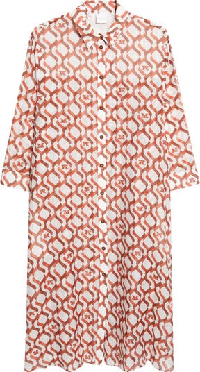 Max Mara's quintessential elegance takes an easygoing turn in this airy cotton-silk voile shirtdress, where lattice-like geometric motifs mingle with a Tuscan-style monogram designed by artist Erberto Carboni for a 1958 ad campaign.